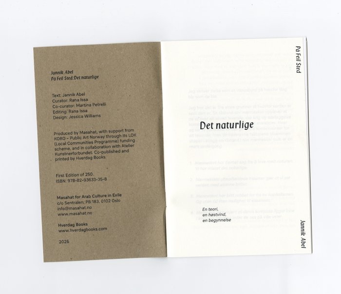 Join us for the launch of «Det Naturlige» by Jannik Abel – a powerful exploration of environmental grief and our connection to nature. The evening features a conversation between artistic director of Masahat Rana Issa and artists Jannik Abel and Ina Hagen, who will present their work on environmental devastation and the use of zines as a medium for artistic expression. Ina's reflections on climate grief resulted in a show as well as a zine in 2023 at Kunstnerforbundet, following a residency at Atelier Kunstnerforbundet. The conversation will explore how to work through environmental devastation and return back to nature.