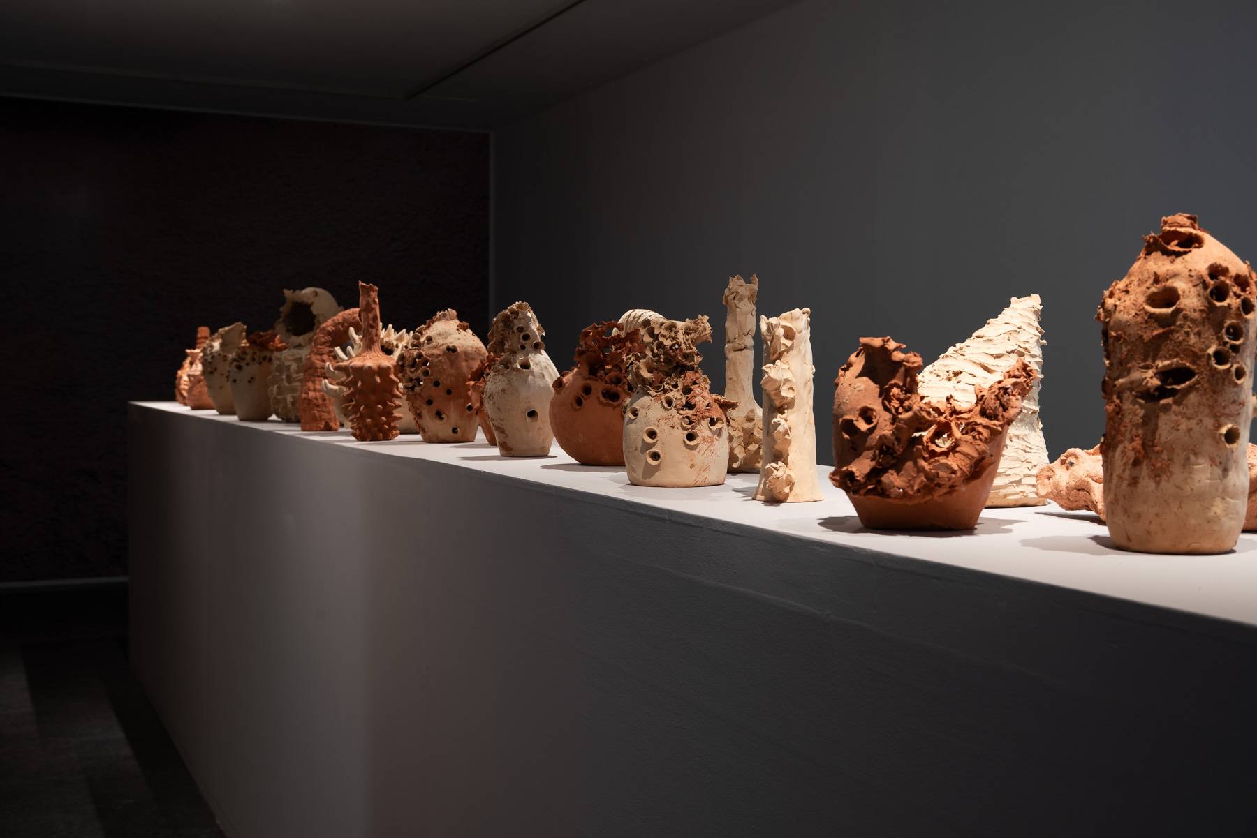 MISS AND HIT utforsker de sammenfiltrede kreftene i ødeleggelse, motstandskraft og transformasjon gjennom leire og bilde. Med røtter i en enkel keramisk tradisjon, men radikalt omformet, kombinerer arbeidet intuitive teknikker innen håndmodellering med en voldsom og uforutsigbar handling: våte leireformer blir skutt med jaktrifle. Ved sammenstøtet oppstår revner som forblir åpne arr, før de ferdige skulpturene deretter brennes ved høy temperatur. Verkene legemliggjør en skjør balanse – skapelse sammenflettet med ødeleggelse; utholdenhet holdt fast i brudd.
